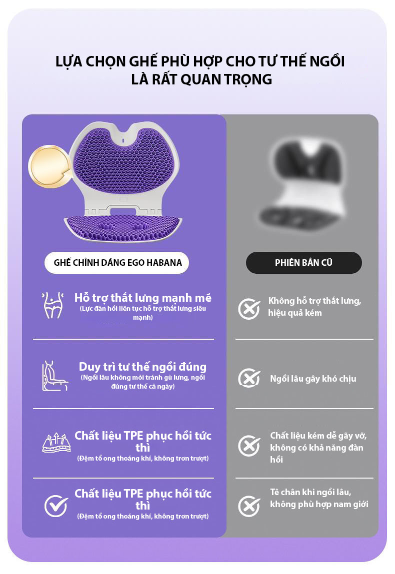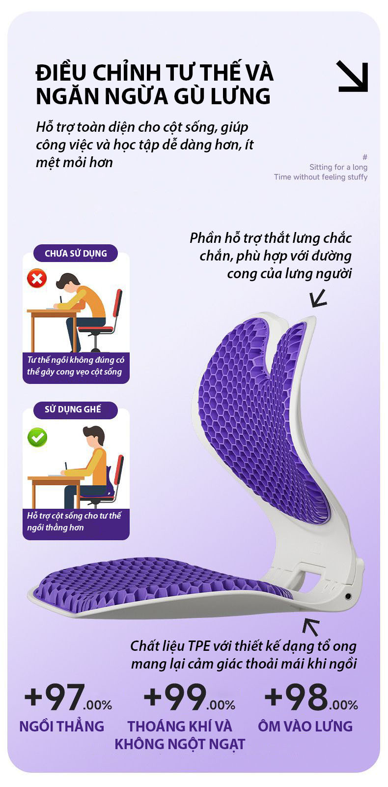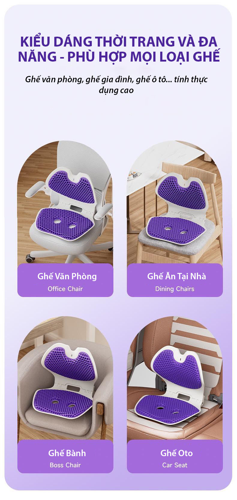 Đa năng – Tối ưu cho mọi nhu cầu: Làm việc văn phòng, học tập - Lái xe đường dài - Thư giãn, sáng tạo - Cải thiện sức khỏe cột sống toàn diện - Tăng hiệu suất làm việc & học tập